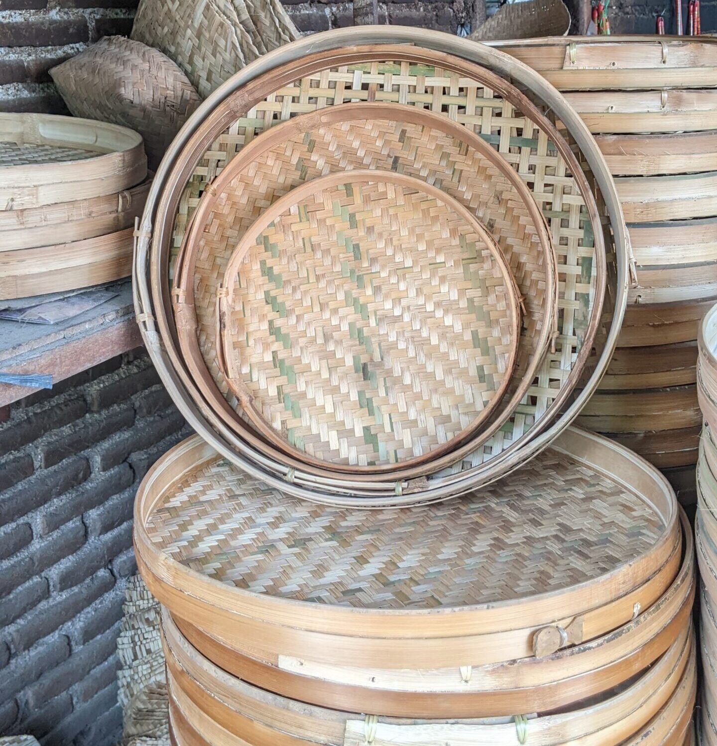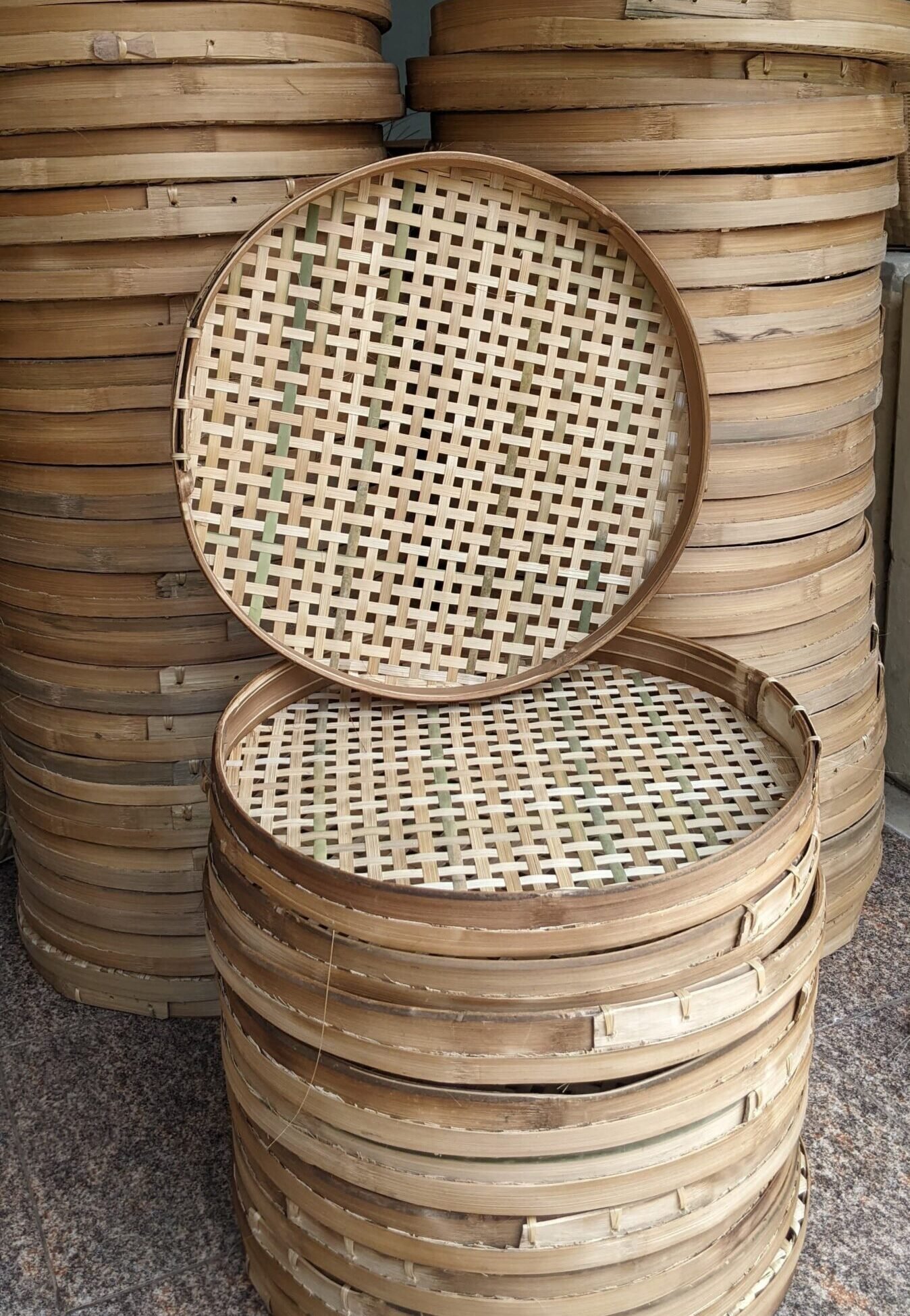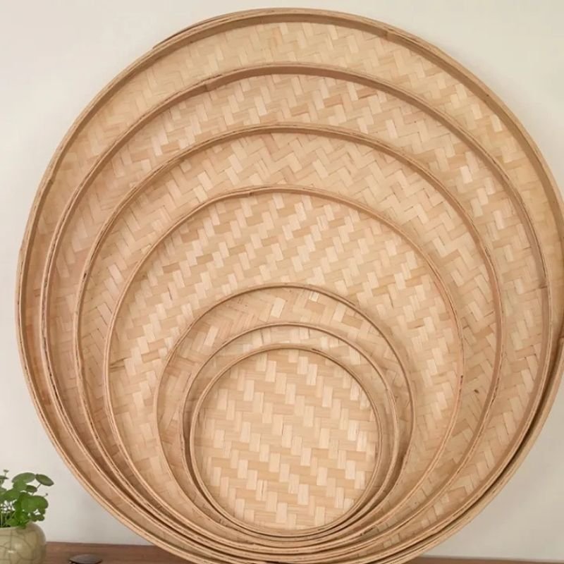 Handwoven bamboo trays, made by skilled local artisans, are passed down from generation to generation and woven by local residents. They are widely used for food trays, food processing, drying, packaging, traditional purpose, and even wall decoration.