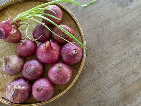 We provide Indonesian products such as woven bamboo trays, and fresh shallots vegetables.